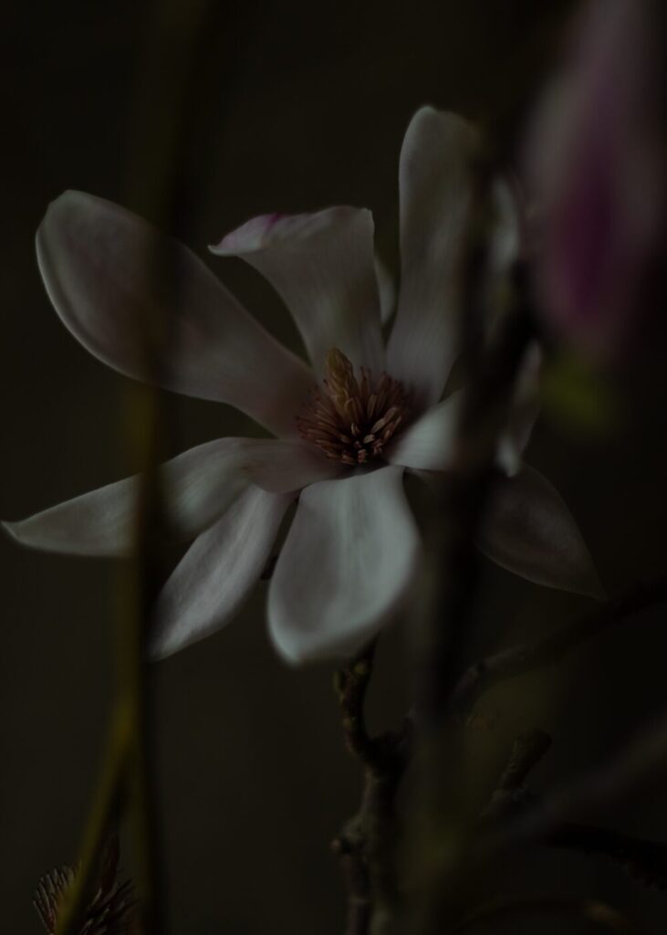 Fully embracing the pared back late winter look of our landscape, the Valentine's bunches will feature sculptural magnolia branches in bud tangled in ochre weeping willow twisting stems. In the warmth of the home, the velvety cases of the magnolia flowers will drop to reveal their pink-streaked hearts, which will then unfold in gloriously bold blooms.
